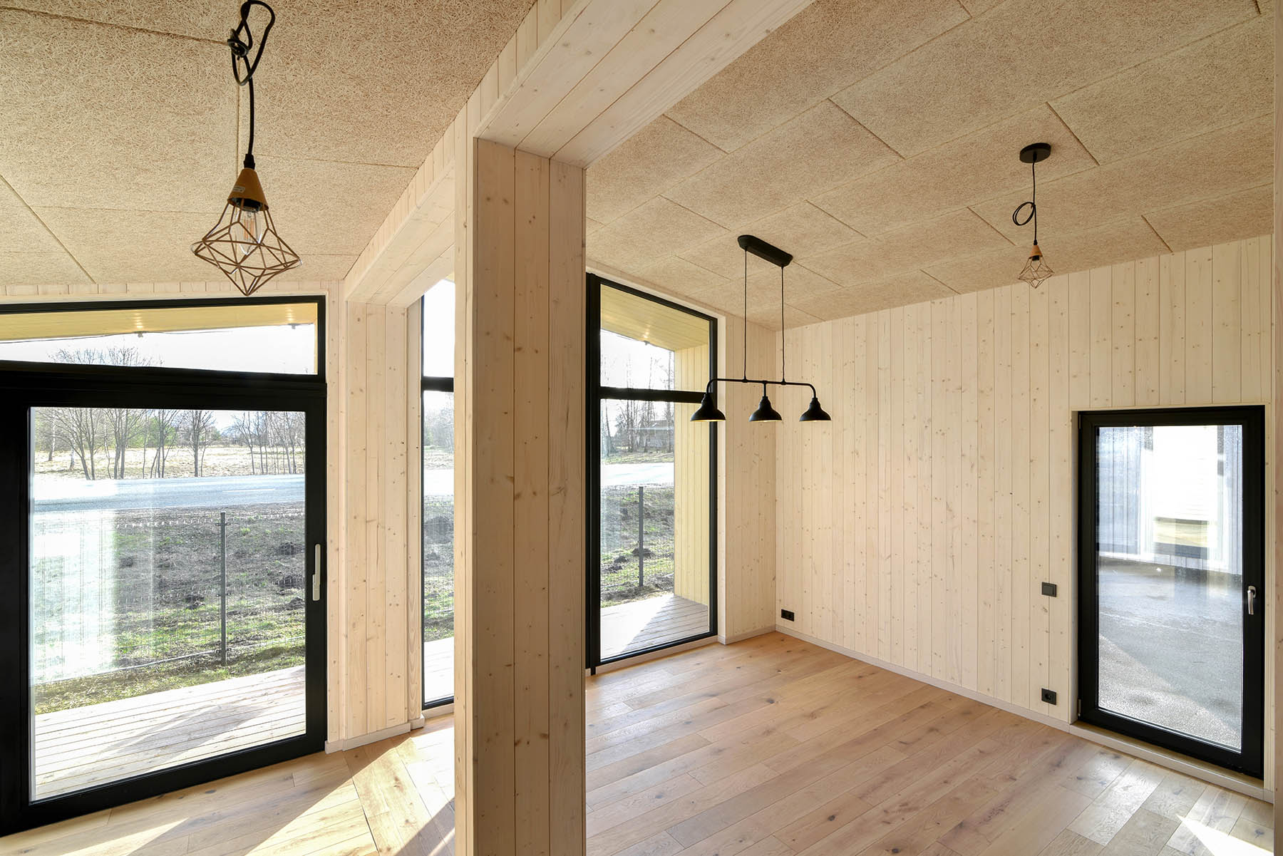 foto: Přirozený interiér, kde dřevní vlna ACU-CEW na stropě vytváří příjemnou akustiku a vizuální teplo.