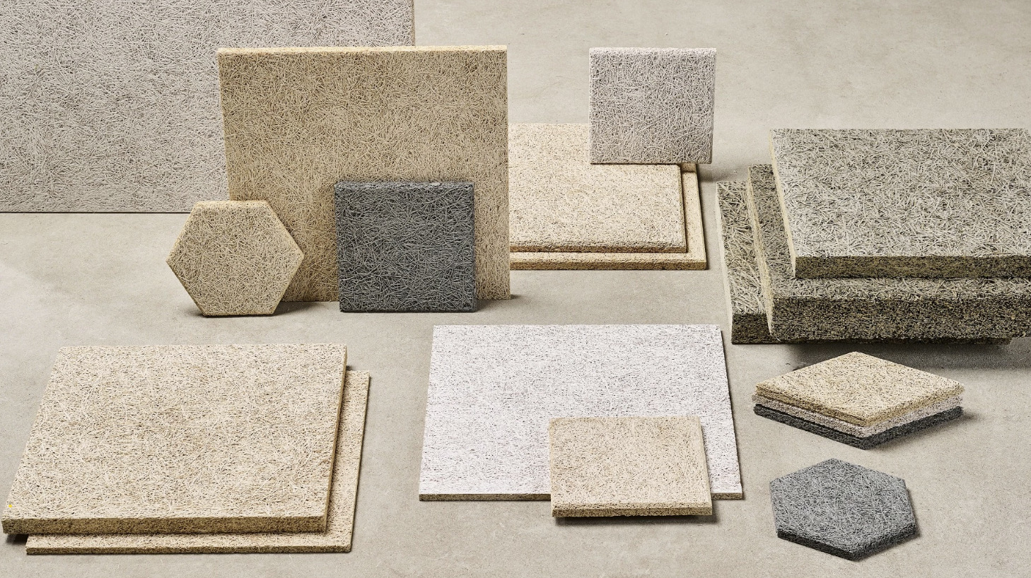 Foto: Široká škála formátů, tlouštěk a barev ACU-CEW pro moderní akustická řešení.