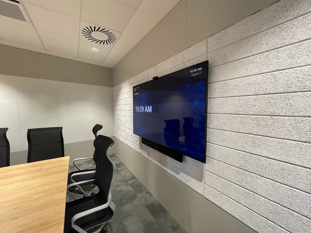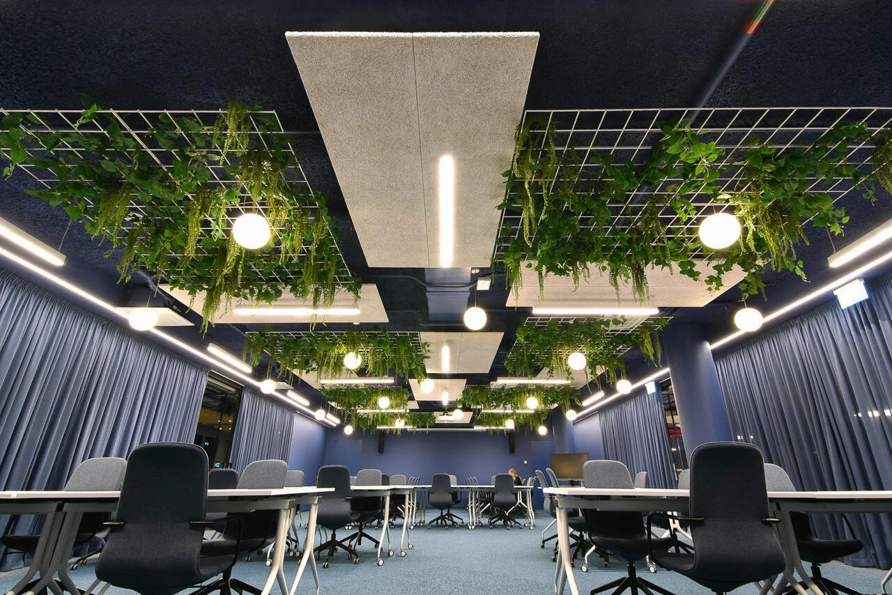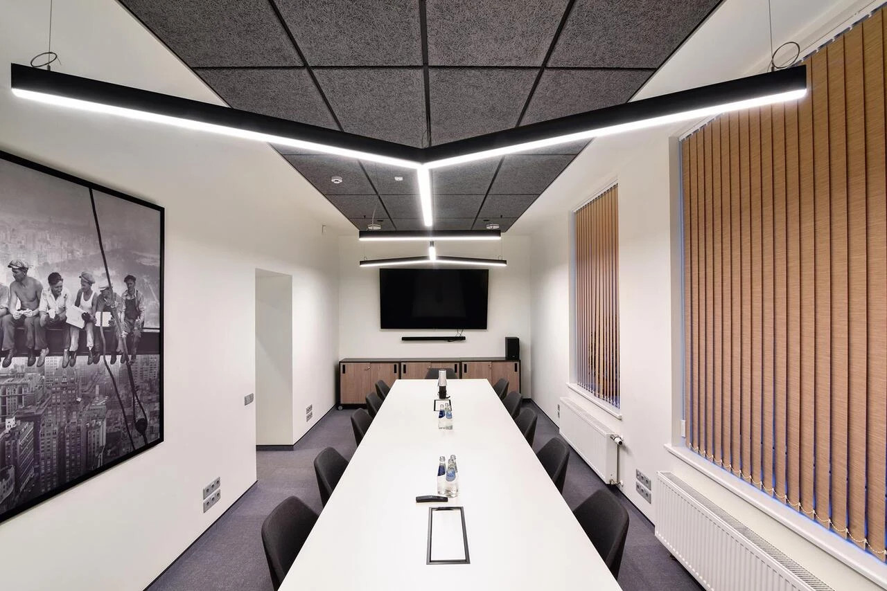 foto: Akustika nemusí byť nudná – lamely z recyklovaného PET materiálu fungujú ako dizajnový prvok aj účinný pohlcovač hluku.