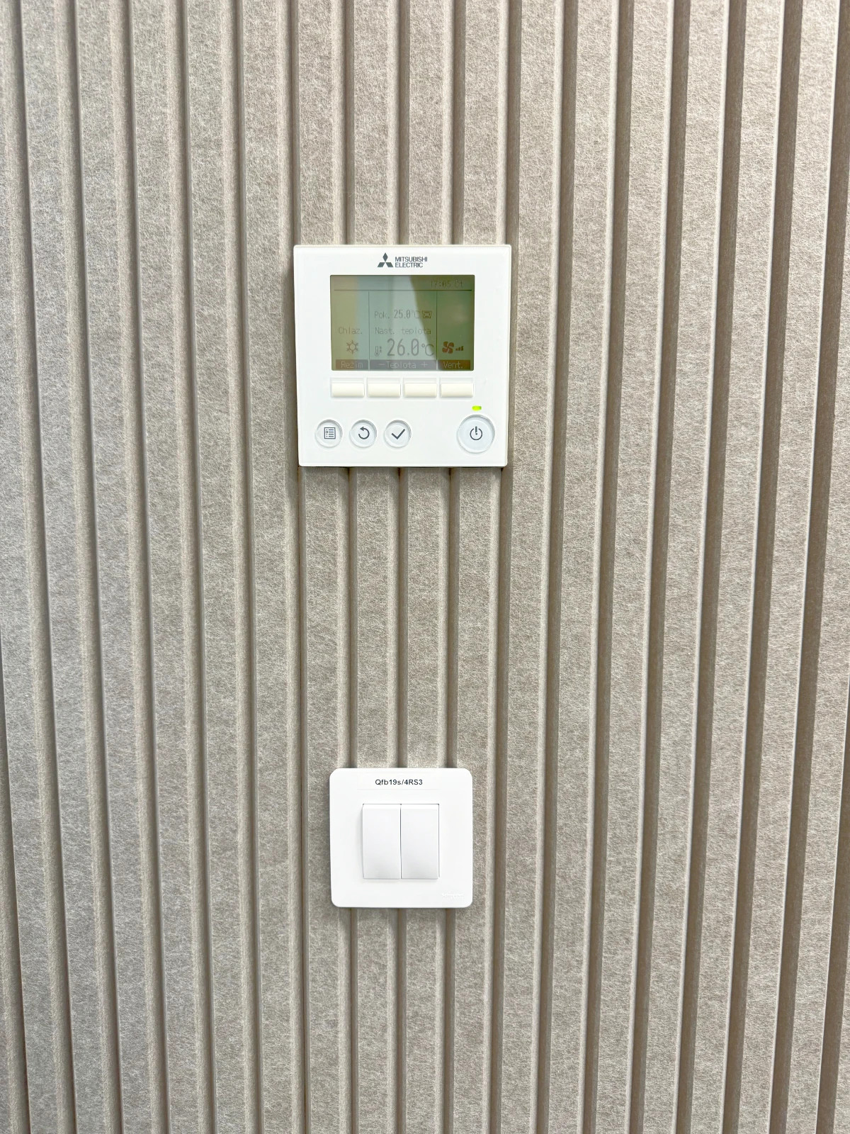 foto: Detail presného výrezu pre ovládač v akustickom obklade – čistá práca, ktorá ladí ako funkčne, tak esteticky.