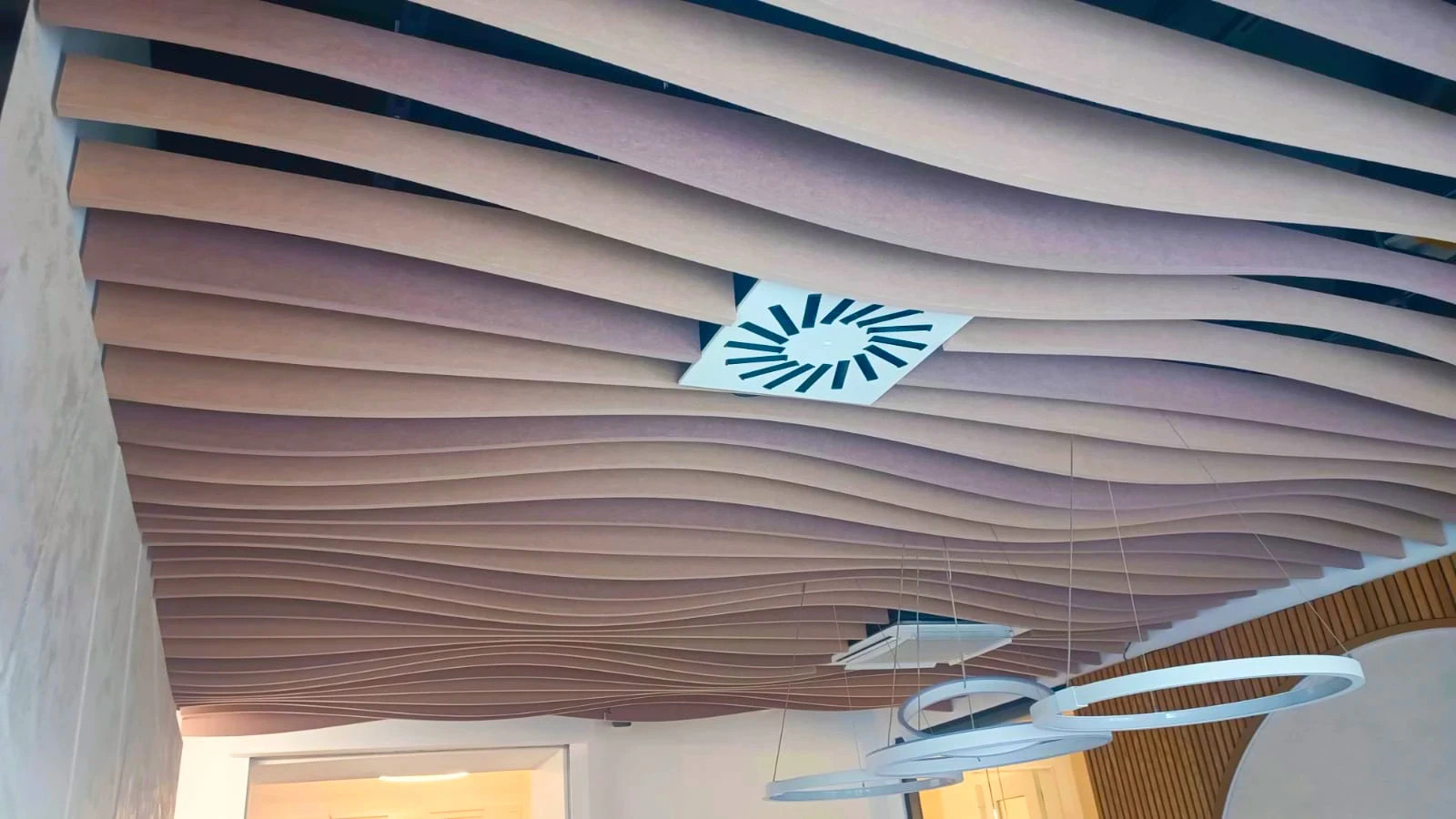 foto: Tvarovaný akustický podhľad z ACU PET s organickými líniami.